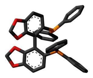 Keywords: SEGPHOS-3D-s-sticks.png Skeletal stick model hydrogen atoms omitted of the SEGPHOS molecule a ligand used for asymmetric synthesis Colour code 505050 Carbon C black<br> F51E1E Oxygen O red<br> FA8C00 Phosphorus P orange<br> 2011-06-13 own DS Visualizer Jynto talk Ball-and-stick version Space-filling version cc-zero Bisphosphines Benzodioxoles Phenyl compounds Images by Jynto |