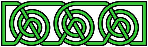 Keywords: Semiregular-quasi-Celtic-knot-linear-inrectangle.svg Ornamental quasi-Celtic knot composed of three repeats of a semi-regular 7-crossings pattern which together fit into a rectangle Loosely based on a design in George Bain's Celtic Art The Methods of Construction but made from straight lines and 60° and 180° circular arcs Self-made image converted from the following vector PostScript source code <pre> 314 395 translate 32 dup scale 0 setgray 64 setlinewidth 357 5 200 50 90 30 arcn 703 911 -200 50 210 270 arc 850 -250 lineto 850 250 lineto 550 0 250 90 270 arc 550 -50 200 270 90 arc 550 0 150 90 270 arc 550 -50 100 270 90 arc 550 0 50 90 150 arc 319 06 -200 50 330 270 arcn 153 911 -200 50 270 210 arcn -192 5 200 50 30 90 arc -550 0 250 90 270 arc -550 -50 200 270 90 arc -550 0 150 90 270 arc -550 -50 100 270 90 arc -550 0 50 90 150 arc -780 94 -200 50 330 270 arcn -900 -250 lineto -900 250 lineto -742 5 200 50 90 30 arcn -396 089 -200 50 210 270 arc -230 94 -200 50 270 330 arc 0 0 50 150 90 arcn 0 -50 100 90 270 arcn 0 0 150 270 90 arcn 0 -50 200 90 270 arcn 0 0 250 270 90 arcn closepath gsave stroke grestore 175 825 175 setrgbcolor 30 setlinewidth stroke/A 0 setgray 64 setlinewidth 0 0 50 94 150 arc -36 60 cos mul -36 60 sin mul rlineto stroke 0 0 150 200 233 arc stroke 0 0 250 117 130 arc stroke 0 -50 200 294 313 arc stroke 1875 sqrt neg 25 moveto -205 60 cos mul -205 60 sin mul rmoveto -74 60 cos mul -74 60 sin mul rlineto stroke -149 198 225 moveto 98 60 cos mul -98 60 sin mul rmoveto 62 60 cos mul -62 60 sin mul rlineto stroke -149 198 225 moveto 379 60 cos mul -379 60 sin mul rmoveto 62 60 cos mul -62 60 sin mul rlineto stroke 175 825 175 setrgbcolor 30 setlinewidth 0 0 50 91 150 arc -39 60 cos mul -39 60 sin mul rlineto stroke 0 0 150 197 236 arc stroke 0 0 250 114 133 arc stroke 0 -50 200 291 316 arc stroke 1875 sqrt neg 25 moveto -202 60 cos mul -202 60 sin mul rmoveto -80 60 cos mul -80 60 sin mul rlineto stroke -149 198 225 moveto 95 60 cos mul -95 60 sin mul rmoveto 68 60 cos mul -68 60 sin mul rlineto stroke -149 198 225 moveto 376 60 cos mul -376 60 sin mul rmoveto 68 60 cos mul -68 60 sin mul rlineto stroke def -550 0 translate 3 A 550 0 translate repeat showpage EOF</pre> 2012 AnonMoos Decorative knots Images with PostScript source code |