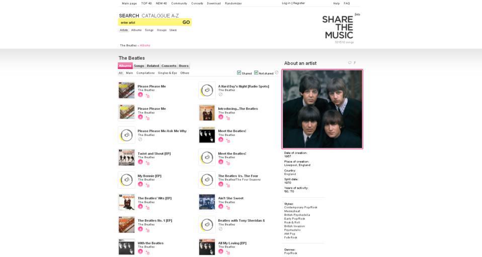 Keywords: ShareTheMusic Beatles.PNG en Beatles - the ShareTheMusic artist page own Cyzek86 Check categories 2010 July 27 en wikipedia ShareTheMusic pl wikipedia ShareTheMusic Industries Communication Music 11 Virtual reality Sound technology Websites Web 2 0 The Beatles Social networks Clubs and societies Internet culture |