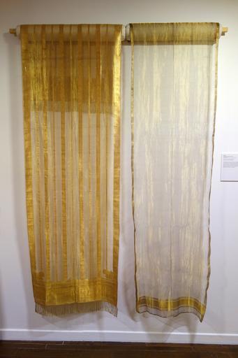 Keywords: Shawls, Varanasi, Uttar Pradesh, India, early 20th century, silk, gold thread - Textile Museum of Canada - DSC00945.JPG en Exhibit in the Textile Museum of Canada 55 Centre Avenue Toronto Ontario Canada Photography was permitted in the museum without restriction 2013-07-04 14 16 43 own Daderot cc-zero Textiles in the Textile Museum of Canada Uploaded with UploadWizard |