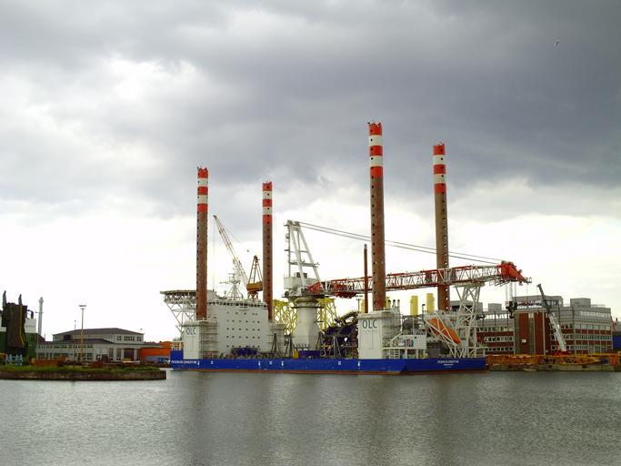 Keywords: Ship Friedrich Ernestine.jpg en The heavy-lift jack-up vessel Friedrich Ernestine for the construction of offshore windfarms in the port of Bremerhaven The ship is named after a coal mine in the Ruhrgebiet de Das Errichterschiff Offshore-Installationsschiff Friedrich Ernestine bei der Lloyd-Werft in Bremerhaven own Tvabutzku1234 2012-06-17 53 33 46 38 N 8 33 12 06 E region DE_heading NE Friedrich Ernestine ship 2012 Ships in Bremerhaven Cc-zero |