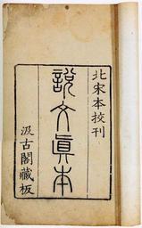Keywords: Shuowen.jpg s of Chinese characters 说文解字十五卷 册页(八册) 白棉纸线装 30×17 5cm 署年:汲古閣刻 from http //www artchinanet com/artinfo/paimai/duoyx/2001cun/gjbb htm used on zh 说文解字 Shuowen Jiezi Seal script PD-old Chinese seal art