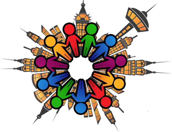Keywords: silhouettes person district city homes human chain human group together community work community gang statistics quantitative arrangement hand in hand