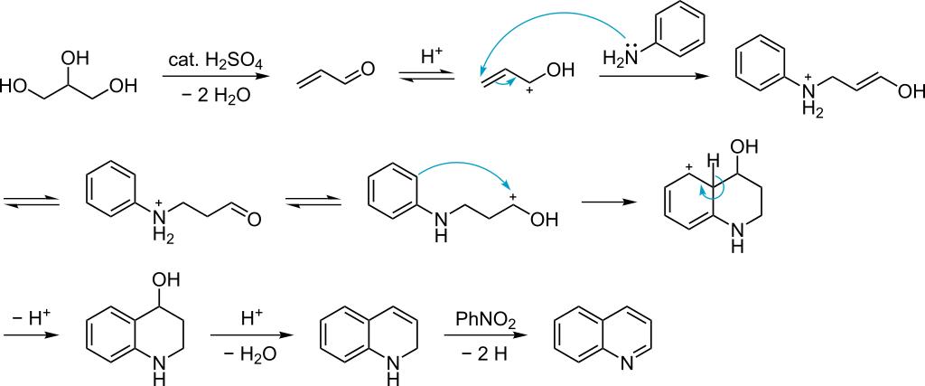 Skraup quinoline synthesis mechanism.svg (4775x1992)