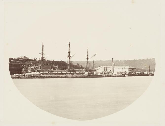 Keywords: SLNSW 479650 146 Cockatoo Island HMS Galatea in Dock SH 256258.jpg en 146 Cockatoo Island; H M S Galatea in Dock SH 256-258 1872 http //acms sl nsw gov au/item/itemDetailPaged aspx itemID 479650 item <br/>http //acms sl nsw gov au/item/itemDetailPaged aspx itemID 442753 album Pickering Charles Percy New South Wales Government Printing Office This image may be used freely without requesting permission The State Library of New South Wales http //www acmssearch sl nsw gov au/search/itemPopLarger cgi itemID 479650 requests acknowledgement that the image is from the collections of the State Library of NSW Albums 1 album containing 1 sepia 166 albumen photoprints ; 46 5 x 56 8 x 7 8 cm Bequeathed by D S Mitchell 1907 ; Transfer from Mitchell Library Printed Books X981 1/5 in 1985 Out of copyright - Created before 1955 Titles of photographs are printed on album page below image ; Printed on title page Photographs / of / Public and Other Buildings c / Taken by Authority of / The Government of New South Wales / At the request of / The Secretary of State for the Colonies / The negatives were taken by Mr Charles Pickering under the direction of James Barnet Esq Colonial Architect / New South Wales Thomas Richards Government Printer - 1872 A printed contents list follows the title page along with text on the port of Sydney ; Each album page has a protective flyleaf and there is a red-brown border drawn around each photograph ; On most album pages at the lower right of image appears a handwritten SH and a number in pencil This referes to the Government Printing Office file number with SH denoting John Sharkey who possessed a large number of Charles Pickering's negatives -- Reference Alan Clifford Government Printing Office 1985 ; Nos 131-140 were taken from Government House Tower; D S Mitchell signature on title page New South Wales Government Printing Office Clio ship ; Galatea Ship David Scott Mitchell Collection botanical gardens; bridges; cathedrals; churches; courthouses; harbours; islands; mortuaries; observatories; offices; official buildings; post offices; prisons; schools colleges; ships; statues; streetscapes Abattoirs Glebe Island N S W ; Australian Museum Sydney N S W ; Bank of Australasia Sydney N S W ; Darlinghurst Court House Darlinghurst N S W ; Darlinghurst Gaol N S W ; Exhibition Building Prince Alfred Park N S W ; Glebe Island Bridge Sydney N S W ; Government House Sydney N S W ; Lassetter Co 421 George Street Sydney N S W ; Mort's Wool Stores Circular Quay Sydney N S W ; Old Treasury Building Sydney N S W ; Royal Botanic Gardens Sydney N S W ; Stock Exchange Bridge Gresham Streets Sydney N S W ; Victoria Club Sydney N S W Album ID 823409 SLNSW-image 479650 PD-Australia PD-1996 Australia Images from the State Library of NSW album 442753 SLNSW media uploaded by User 99of9 Buildings in Sydney 1872 in Sydney Photographs by Charles Percy Pickering HMS Galatea ship 1859