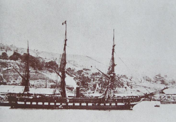 Keywords: SMS Novara 1864 Martinique.jpg Austrian frigate Novara at Martinique in 1864 with Ferdinand Maximillian and his entourage aboard en route Santa Cruz Mexico where he and his wife were to take on the title of Emperor and Empress of Mexico Note the Mexican flag on top of the main mast cs Rakouská fregata SMS Novara v roce 1864 na Martiniku Na palubě lodi byl Ferdinand Max který pluj do Mexika převzít vládu jako mexický císař ISBN 3853688853 p 167 de Wladimir Aichelburg editor Author 1864 PD-old Novara ship 1862 1864 French Intervention in Mexico |