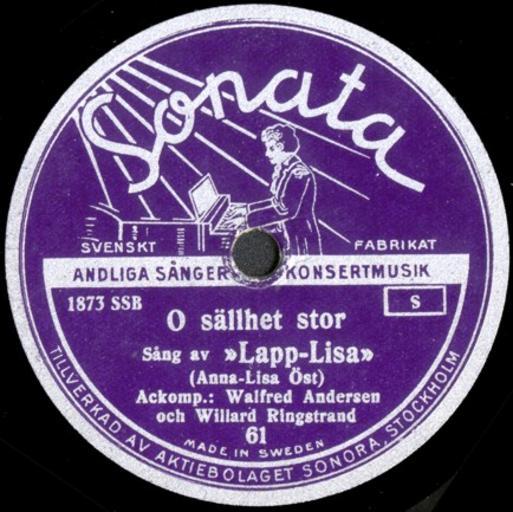 Keywords: Sonata61.jpg Sonata Swedish record label for religious music owned by AB Sonora Picture source the record collection of Fredrik Tersmeden Lund Sweden PD-old Location not applicable Gramophone records Record labels