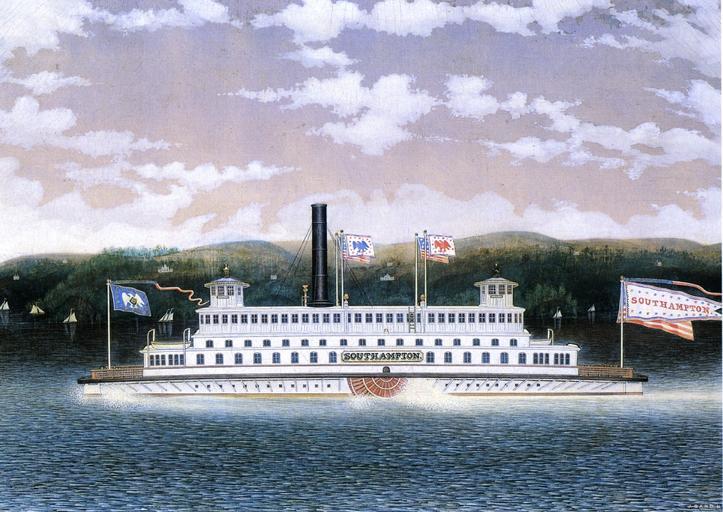 Keywords: Southhampton (steam ferry 1869).jpg en Southampton steam ferry built in 1869 served in New York harbor and on the East River Oil on canvas by James Bard http //www the-athenaeum org/ The Athenaeum org Creator James Bard 1880 Original in the collection of the New York Historical Society as of 1997 Reproduced in Mariner's Museum and Peluso Anthony J Jr The Bard Brothers -- Painting America under Steam and Sail Abrams New York 1997 ISBN 0-8109-1240-6 PD-old-100 James Bard 1871-1880 works Ferries in New York Harbor Steam ferries Images from the-athenaeum org |