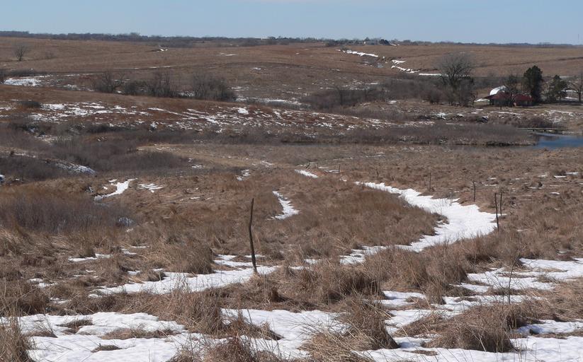 Keywords: Spring Creek Prairie wagon ruts from E 2.JPG en Snow-filled wagon ruts descending a slope to the west of Spring Creek at the Spring Creek Prairie Audubon Center; seen from the east The small pond at the right edge of the photo is on Spring Creek A deep set of ruts is marked by vertical poles; it arcs rightward through the foreground down the hill and then leftward again near the hill's base A second less deep set of ruts can be seen to the left of and parallel to the first ruts 2012-02-21 own Ammodramus cc-zero Uploaded with UploadWizard Pictures by Ammodramus Taken with Panasonic Lumix DMC-FZ20 Spring Creek Prairie wagon ruts Lancaster County Nebraska |