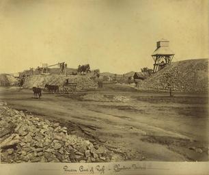 Keywords: StateLibQld 1 234572 Queen Line of Reef, Charters Towers, ca. 1878.jpg en Queen Line of Reef Charters Towers ca 1878 <br /> A horsedrawn vehicle probably a hawker of general stores and goods is being driven around the diggings circa 1878 handle 10462/deriv/38232 Item is held by John Oxley Library State Library of Queensland PD-Australia StateLibQld-License Gold mining in Australia Mines in Charters Towers Horse-drawn vehicles in Australia 19th-century photographs of Queensland |