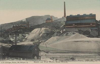 Keywords: StateLibQld 2 237202 View of the mundic and west works at Mount Morgan mine, ca. 1905.jpg en View of the mundic and west works at Mount Morgan mine ca 1905 The Mount Morgan mine opened in 1882 and the Mount Morgan Gold Mining Co Ltd went into liquidation in 1927 circa 1905 handle 10462/deriv/38378 Item is held by John Oxley Library State Library of Queensland Lundager J H Jens Hansen 1853-1930 PD-Australia StateLibQld-License Images of postcards from the State Library of Queensland Mining buildings in Australia Black and white photographs Mount Morgan Mine Gold mines in Queensland Chimneys in Queensland Views of Queensland |