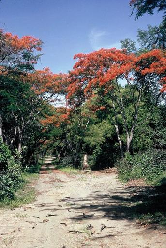 Keywords: Street between Balibo and Batugade.jpg pt As acácias rubras no itinerário Balibó-Batugadé own Norberto Benigno 1968/1970 Foi publicado no Facebook Batugade Roads in East Timor Portuguese Timor Delonix regia in East Timor