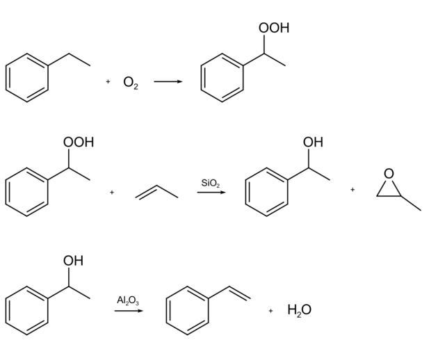Keywords: Styrol synthesis.svg reaction scheme of styrene synthesis Reaktionsschema zur Styrolsynthese Own 2007-07-20 Ilgom talk Reactions of ethylbenzene Syntheses of styrene