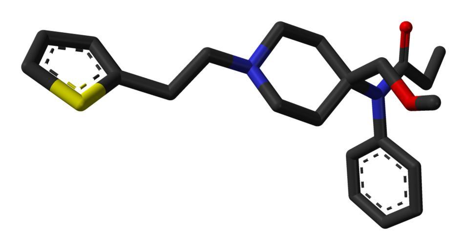Keywords: Sufentanil-xtal-3D-sticks-skeletal-A.png Stick model of the sufentanil molecule in the crystal structure X-ray diffraction data from cite journal N- 4- Methoxymethyl -1-2- 2-thienyl ethyl-4-piperidinyl -N-phenylpropanamide sufentanil O M Peeters N M Blaton and C J De Ranter Acta Crystallographica Section B 1979 35 4 999-1001 doi 10 1107/S0567740879005409 Own 2008-05-04 Ben Mills Benjah-bmm27 Images by Ben Mills Sufentanil |
