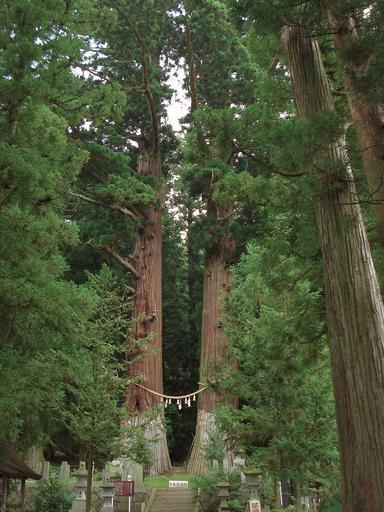 Keywords: Suwa Shrine 080823 01.jpg en This twin cryptomeria Jiji-sugi right ande Baba-sugi left is specified for the Natural Monument in Japan in Ono Town Fukushima Prefecture Japan ja 福島 田 郡小野町の諏訪神社にある翁 (じじすぎ・右側) 媼 (ばばすぎ・左側) 昭和12年に国の天然記念物に指定されている Own Yauchi 2008-08-23 Cryptomeria japonica Natural monuments in Japan Ono Fukushima Shimenawa Shrines in Fukushima prefecture Suwa-jinja
