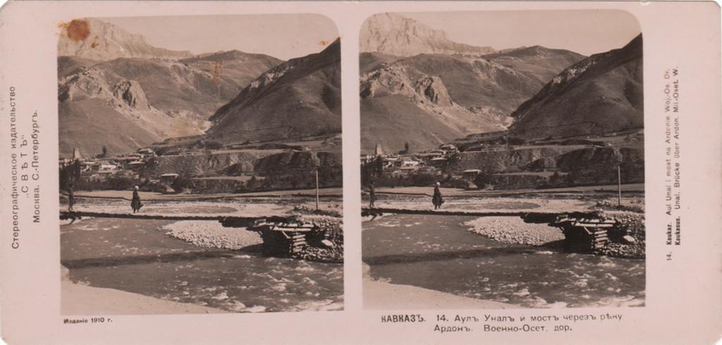 Keywords: Svet. Caucasus. 014. Aul Unal and bridge over the river Ardon.jpg en Aul Unal and bridge over the river Ardon ru Аул Унал и мост че ез еку А дон ka ს ფელი უ ალი და მდი არე არდ ის ხიდი 1910 Stereoscopic collection of the SVET publishing author PD-old-100 Uploaded with UploadWizard Caucasus Stereo cards by SVET publishing Towns and villages in Alagirsky District |