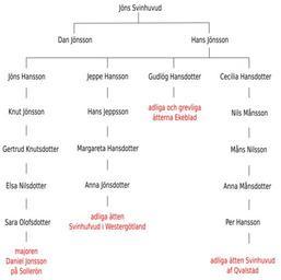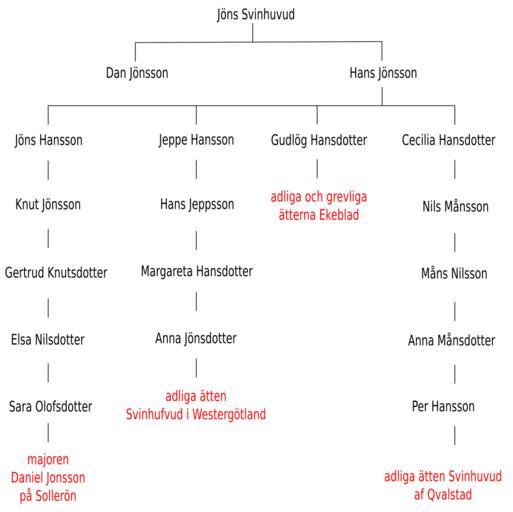 Keywords: Svinhuvud.svg en Descendands of the Svinhuvud family in brief based upon among others Släktforskarnas Årsbok 2008 sv Delar av Svinhuvud-ätten enligt bl a Släktforskarnas årsbok 2008 own Börge 2010-04-18 Family trees Noble families of Sweden |
