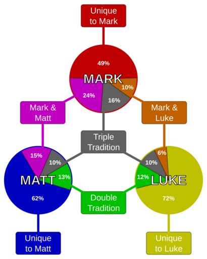 Keywords: Synoptic Overlap by Words en.svg en Diagram of overlap in wording between the three Synoptic Gospels Matthew Mark and Luke by word count according to the figures given in HonorĂ© A M 1968 A statistical study of the synoptic problem Nov Test 10 95 “147 2014-01-01 21 51 04 own SlothMcCarty Relationship_between_synoptic_gospels-en svg based upon pericope counts cc-zero Uploaded with UploadWizard Synoptic Gospels |