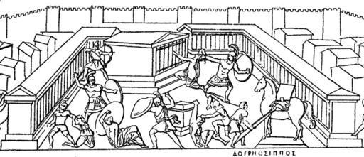 Keywords: Tabula iliaca - Iliupersis.png Tabula Iliaca relief with illustrations drawn from the Homeric poems and the Epic Cycle “here from the Ilioupersis the Iliad the Little Iliad and the Æthiopis The Greeks are issuing from the wooden horse ΔΟΥΡΗΟΣ ΙΠΠΟΣ and have already begun the massacre On the steps of the temple itself Ajax is dragging Cassandra by the hair while she vainly implores the help of the goddess A Trojan archer lurking behind the temple aims his bow at Ajax Outside the precinct are other Greeks who have been let in at the gates hastening to the fight Table iliaque bas-relief illustrant des scènes des poèmes homériques et du Cycle épique “ ici de l ™Ilioupersis de l ™Iliade de la Petite Iliade et de l ™Ã‰thiopide Calcaire Å“uvre romaine Ier siècle av J -C http //www mediterranees net/art_antique/oeuvres/iliaca/schreiber_en html http //www flickr com/photos/16472880 N06/5066560554/ flickr location Palazzo Nuovo first floor Hall of the Doves Bonn 1878 Jahn-Michaelis Griech Bilderchroniken Pl I original Limestone Roman artwork 1st century BC restored drawing of the original PD-old File Tabula iliaca Musei Capitolini MC0316 retouched jpg Tabula iliaca Musei Capitolini Trojan horse |