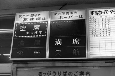 Keywords: Takamatsu station ferry boat seat availability information 19880316 02.JPG ja 宇高 絡船高 駅の空席表示 次のホバークラフトに空席がないことを示している en Information board at JR Shikoku Takamatsu station to indicate seat availability on next ships The picture indicated no seat available in the next hover craft 1988-03-16 own Hahifuheho other versions cc-zero JNR Uko Ferry Takamatsu Station Kagawa 1988 in water transport in Japan 1988 in rail transport in Japan Black and white photographs of Japan in the 1980s Photographs taken on 1988-03-16 |