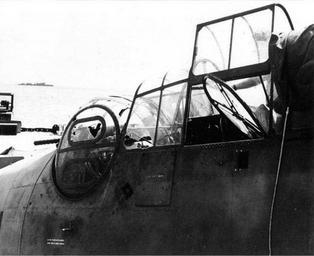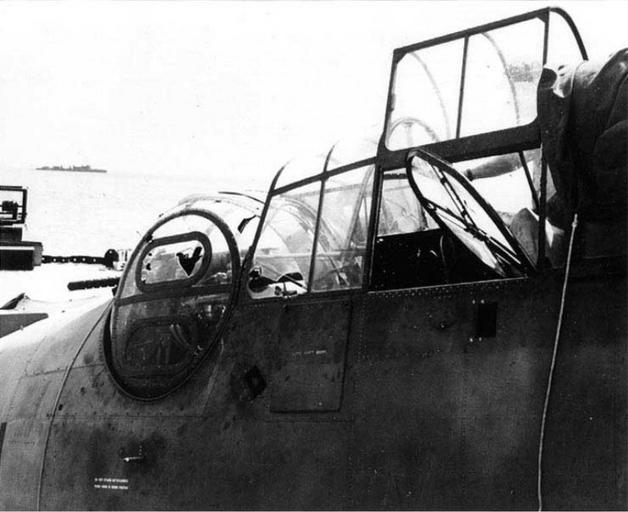 Keywords: TBF turret Midway 1942.jpg Rear cockpit and 50 caliber machinegun turret of the only survivor of six Torpedo Squadron Eight VT-8 Grumman TBF Avengers that had attacked the Japanese carrier force in the morning of 4 June 1942 Seaman 1st Class Jay D Manning who was operating the 50 caliber machinegun turret was killed in action with Japanese fighters during the attack Damage to the turret can be seen in this view The plane's pilot was Ensign Albert K Earnest and the other crewman was Radioman 3rd Class Harry H Ferrier Both survived the action <br> The plane TBF-1 BuNo 00380 was photographed near the foot of the Sand Island pier Midway on 24 June 1942 prior to shipment to the United States for evaluation Stencilled sign below the gun turret reads Do not stand on walkway when wing is being folded That on panel in front of turret reads Life raft comp The ship in the left background is probably USS Ballard AVD-10 U S Naval History Center http //www history navy mil/photos/images/g10000/g11635c htm US Navy 1942-06-24 Grumman TBF Avenger Battle of Midway US forces on Midway Aircraft dorsal gun turrets USS Ballard DD-267 ship 1918 PD-USGov-Military-Navy |