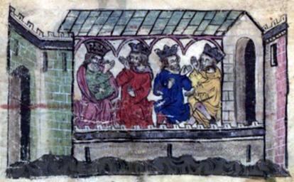 Keywords: Temür Chabar Toqta Öldjeïtu.jpeg Temür Yuan Chapar Ulus of Ögedei Toqta Golden Horde Öljaitü Ilkhanate Hayton of Corycus Fleur des histoires d'orient Тэму Юань Чапа Улус Угэдэя Тохта Золотая О да Олджейту Улус Хулагу Гетум Патмич Fleur des histoires d'orient «Цветник исто ий земель Востока» Temür Chabar Toqta Öldjeïtu Hayton Fleur des histoires d'orient Bibliothèque nationale de France Département des Manuscrits Division occidentale http //mandragore bnf fr/jsp/feuilleterNoticesImage jsp numero 154 id 74207 idPere 17 Nouvelle acquisition française 886 fol 37v Unknown Catalonia XIV century I quarter PD-old BNF Nouvelle acquisition française 886 Emperors of the Yuan Dynasty Golden Horde Öljaitü Hayton of Corycus Chapar Khan Toqta |