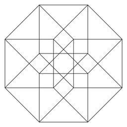 Keywords: Tesseract no vertices.svg Created with Sage en A tesseract graph with no vertices Created with the Sage code <source lang python >plot graphs CubeGraph 4 vertex_labels False vertex_size 0 </source> 2011-10-10 own Eviatar Bach cc-zero Tesseract Petrie polygon Images with Sage source code Files by User InverseHypercube |