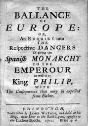 Keywords: The ballance of Europe.jpg en The ballance of Europe or an enquiry into the respective dangers of giving the Spanish monarchy to the Emperour as well as to King Philip 1711 National Library of Australia Defoe Daniel 1661 -1731 attributed name PD-old-100 Uploaded with UploadWizard Books from Scotland War of the Spanish Succession Books in English 1711 books