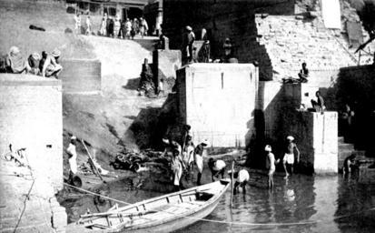 Keywords: The Cremation Ghat, Benares.jpg en The Cremation Ghat in Benares as published on the book Indian Myth and Legend by Donald Alexander Mackenzie 1913 Donald Alexander Mackenzie Indian Myth and Legend http //www gutenberg org/ebooks/47228 Johnson and Hoffmann other versions PD-old-70-1923 Uploaded with UploadWizard Boats at the ghats in Varanasi |