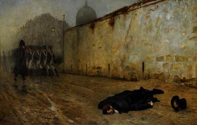 Keywords: The Execution of Marshal Ney.jpg en The Execution of Marshal Ney by Jean Leon Gerome oil on canvas Michel Ney 1st Duc d'Elchingen 1st Prince de la Moskowa 10 January 1769 “ 7 December 1815 popularly known as Marshal Ney was a French soldier and military commander during the French Revolutionary Wars and the Napoleonic Wars He was one of the original 18 Marshals of France created by Napoleon He was known as Le Rougeaud red faced or ruddy by his men and nicknamed le Brave des Braves the bravest of the brave by Napoleon Sheffield Galleries and Museums Trust UK 1868 Militärhistoria 4/2015 Jean Leon Gerome other versions Text removed with GIMP PD-Art Uploaded with UploadWizard History paintings by Jean-LĂ©on GĂ©rĂ´me Michel Ney Executions in art |