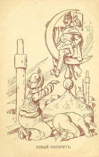 Keywords: The New Mahomet.jpg en Russian propaganda postcard from the First World War or from the period just prior to its outbreak depicting the relationship between Germany and the Ottoman Empire The Kaiser is depicted as The New Mahommed perched on the alem of a mosque Scan of a WW1 postcard Author PD-old Humorous postcards of Russia Propaganda cartoons Cartoons of Russia Caricatures of Wilhelm II of Germany Pickelhaube in art |