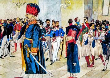 Keywords: The Ottoman ambassador and his page at a ball at the royal residence in Athens, 1838.jpg en The Ottoman ambassador and his page at a ball at the royal residence in Athens 1838 el Ο οθωμανός ρέσβης σε δεξίωση στα βασιλικά ανάκτορα σήμερα ουσείο Πόλεως των Αθηνών στην λατεία Κλαυθμώνος το 1838 s 1830 Τα ρώτα έτη της Οθωνικής Ε οχής εις τας Υδατογραφίας του Köllnberger publication of the National Historical Society Athens Creator Ludwig Köllnberger Custom license marker 2014 07 07 PD-old-100 Historical images of people of Athens 1830s Greece in the 1830s Ludwig Köllnberger Uploaded with UploadWizard Balls dance in art Ambassadors of the Ottoman Empire Uniforms of the Ottoman Empire |