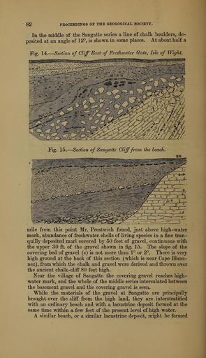 Keywords: The Quarterly journal of the Geological Society of London (12961482284).jpg 82 <br> PKOCEEDINGS OF THE GEOLOGHCAL SOCIETY <br> In the middle of the Sangatte series a line of chalk boulders de- <br> posited at an angle of 12° is shown in some places At about half a <br> -pig 14 ” Section of Cliff East of Freshwater Gate Isle of Wight <br> Eig 15 ” Section of Sangatte Cliff from the heach <br> mile from this point Mr Prestwich found just above high-water <br> mark abundance of freshwater shells of living species in a fine tran- <br> quilly deposited marl covered by 50 feet of gravel continuous with <br> the upper 30 ft of the gravel shown in fig 15 The slope of the <br> covering bed of gravel e is not more than 1° or 2° There is very <br> high ground at the back of this section which is near Cape Blanc- <br> nez from which the chalk and gravel were derived and thrown over <br> the ancient chalk-cliff 80 feet high <br> Near the village of Sangatte the covering gravel reaches high- <br> water mark and the whole of the middle series intercalated between <br> the basement gravel and the covering gravel is seen <br> While the materials of the gravel at Sangatte are principally <br> brought over the cliff from the high land they are interstratified <br> with an ordinary beach and with a lacustrine deposit formed at the <br> same time within a few feet of the present level of high water <br> A similar beach or a similar lacustrine deposit might be formed 36102927 111288 51125 Page 82 Text v 25 http //www biodiversitylibrary org/page/36102927 1869 Geological Society of London Biodiversity Heritage Library The Quarterly journal of the Geological Society of London v 25 1869 Geology Periodicals Smithsonian Libraries bhl page 36102927 dc identifier http //biodiversitylibrary org/page/36102927 smithsonian libraries Information field Flickr posted date ISOdate 2014-03-06 Check categories 2015 August 26 CC-BY-2 0 BioDivLibrary https //flickr com/photos/61021753 N02/12961482284 2015-08-26 15 51 21 cc-by-2 0 PD-old-70-1923 The Quarterly journal of the Geological Society of London 1869 Photos uploaded from Flickr by Fæ using a script |