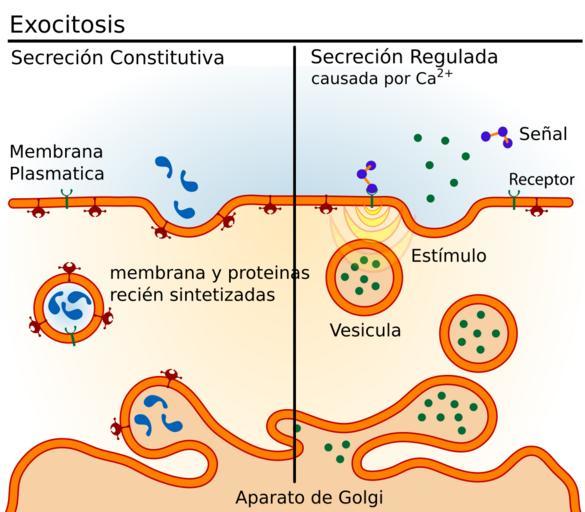 Keywords: Tipos de exocitosis.svg es La exocitosis es el proceso en el cual salen de la célula sustancias por medio de vesículas Puede ser constitutiva continua o regulada se dá bajo un estímulo 2011-09-23 File Exocytosis types svg LadyofHats cc-zero Uploaded with UploadWizard Biology diagrams |