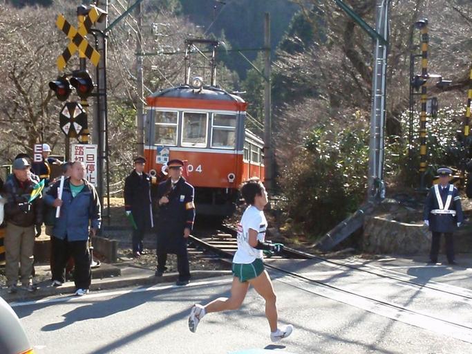 Keywords: Tozan Kowakidani cross Ekiden Aogaku.jpg en When the runner of Hakone-ekiden Relay Race passes Hakone Tozan Railway stops the train in this side of the railroad crossing 35 24009 139 05402 2010 Hakone Ekiden Aoyama Gakuin University Hakone Tozan Type Moha 1 Kowakidani crossing |