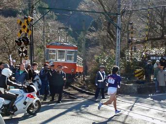 Keywords: Tozan Kowakidani cross Ekiden Meidai.jpg en When the runner of Hakone-ekiden Relay Race passes Hakone Tozan Railway stops the train in this side of the railroad crossing 35 24009 139 05402 2010 Hakone Ekiden Hakone Tozan Type Moha 1 Kowakidani crossing Meiji University Athletic club |