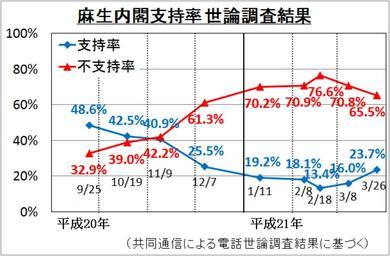 Keywords: Transition of the Aso cabinet's approval rating to 2008-09 from 2009-03.png ja wikipedia 2010 June 12 麻生内閣の支持率推移 2008年9 から2009年3 まで ja 共同 信社による電話世論調査結 2009-03-30 User Yhiroyuki 公 情報 thumb 2009年1 まで(読売新聞 共同 信) 共同 信社による電話世論調査結 wikitable + 平成20年 調査日 9 24日 25日 10 18日 19日 11 8日 9日 12 6日 7日 - 支持率 48 6 42 5 40 9 25 5 - 不支持率 32 9 39 0 42 2 61 3 wikitable + 平成21年 調査日 1 10日 11日 2 7日 8日 2 17日 18日 3 7日 8日 3 25日 26日 - 支持率 19 2 18 1 13 4 16 0 23 7 - 不支持率 70 2 70 9 76 6 70 8 65 5 出典 2009-03-30 Original uploader was Yhiroyuki at http //ja wikipedia org ja wikipedia ISOdate Link Yhiroyuki Original upload log ja wikipedia Kkkc CommonsHelper page ja wikipedia Transition_of_the_Aso_cabinet 27s_approval_rating_to_2008-09_from_2009-03 png 2009-03-31 15 54 Yhiroyuki 640×420× 31750 bytes <nowiki> 麻生内閣の支持率推移 2008年9 から2009年3 まで 共同 信社による電話世論調査結 2009/04/01 User Yhiroyuki 公 情報 PD-</nowiki> 2009-03-30 15 19 Yhiroyuki 640×420× 31711 bytes <nowiki> 麻生内閣の支持率推移 2008年9 から2009年3 まで 共同 信社による電話世論調査結 2009/03/30 User Yhiroyuki 公 情報 ファ�</nowiki> Approval ratings Kyodo News Cabinet of Japan Tarō Asō in 2008 Tarō Asō in 2009 2008 in Japan 2009 in Japan |