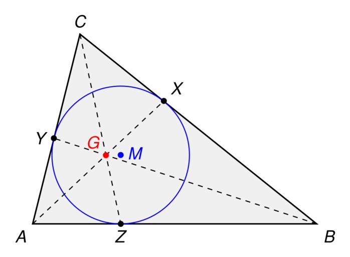 Keywords: Triangle-gergonne-point.svg en Triangle with marked Gergonne point <math>G</math> center of inscribed circle <math>M</math> All dashed lines connect the touching points of the inscribed circle with one triangle side with the opposing vertex de Dreieck mit eingezeichnetem Gergonne-Punkt <math>G</math> Der Punkt <math>M</math> ist der Mittelpunkt des Inkreises des Dreiecks Die gestrichelten Strecken sind durch die Berührpunkte des Inkreises mit den Seiten sowie den gegenüberliegenden Dreieckseckpunkten definiert own MartinThoma 2014-12-19 ValidSVG Source is available at https //github com/MartinThoma/LaTeX-examples/ github TikZ diagrams Images by Martin Thoma/Mathematics/Triangles Triangle geometry Joseph Diez Gergonne Quality images by Martin Thoma Cc-zero --CEphoto Uwe Aranas <span class signature-talk ></span> 05 20 17 June 2016 UTC ImageNoteEnd 1 ImageNote 2 331 368 45 56 900 660 2 Ich hätte das M noch ein Stückchen nach oben gesetzt damit es Luft zur gestrichekten Linie bekommt --CEphoto Uwe Aranas <span class signature-talk ></span> 10 26 17 June 2016 UTC ImageNoteEnd 2 QualityImage |