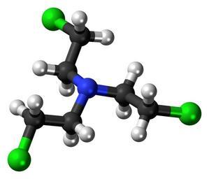 Keywords: Tris(2-chloroethyl)amine 3D ball.png Ball-and-stick model of the tris 2-chloroethyl amine molecule also known as HN3 nitrogen mustard a chemical weapon Colour code 505050 Carbon C black<br> F0F0F0 Hydrogen H white<br> 3C50FA Nitrogen N blue<br> 14F014 Chlorine Cl green<br> 2011-07-15 own DS Visualizer Jynto talk Space-filling version cc-zero Images by Jynto nitrogen mustards |