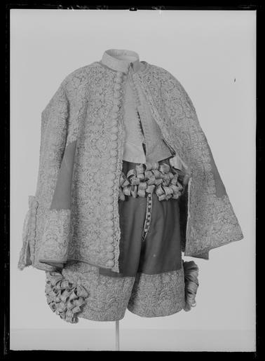 Keywords: Tröja av mönstrad silverbrokad, ca 1650-1660 - Livrustkammaren - 78789.tif LSH artwork sv Buren av Karl X Gustav 1622-1660 vid kröningen 1654-06-06 okänd tillverkare <br/>Tröja Livplagg av innocenttyp Skuren i 2 lika stora framstycken vars framkanter följer staden 1 helt bakstycke 1 ståndkrage 10 små skört samt 2 svängda stycken för varje ärm Plagget är sytt av rik silverbrokad och har även foder av silverbrokad i annat mönster Tröjan är försedd med mellanfoder av linnelärft 20x19 tr/cm2 och planschetter triangelformade styvnader nedtill i de spetsiga framkanterna Kragen är på insidan fodrad med vitt mönstrat siden av samma sort som återkommer i tröjan till dräkt nr 3401 och har mellanfoder av linnelärft 25x21 tr/cm2 med inlagd styvnad troligen fiskben Vänsterframstycke har 21 knapphål för de bevarade 21 knapparna i höger framstycke Knapphålen är sydda med vitt högertvinnat silke 8 stygn/cm över 1 tråd Knapparna d 1 3 cm är med silverlansomspunnet vitt högertvinnat silke trind kantilj och silverlan Tre stycken likadana knappar sitter i kragen men motsvarande tränsar saknas <br/>Silverbrokaden som utgör tröjans övertyg benämnes rik silverduk Den kan beskrivas på följande sätt Vådbredd minst 50 cm 72x18 tr/cm2 Varp av tunt vitt otvinnat silke De grövre otvinnade vita inslagstrådarna bildar dels botten med silverlan i varje inslag dels blommönster av flotterade trådar med högertvinnade silverlan i varje sådant inslag Stad 1 cm 10 gröna 4 orange 12 gröna 1 vit tråd Mönsterrapport 8 8 x 8 8 cm Mönstret är symmetriskt uppbyggt med halvnaturalistiska blommor sammanhållna i rosettlika arrangemang Ärmarna är avsedda att ha den främre sömmen öppen På de motsatta bakre sömmarna har ärmarna sprund nedtill vid handleden Man har avsett att vika upp ärmensnederkant till uppslag Förutom de 10 trapetsformade skörten sitta i midjan på tröjansinsida 7 st stroppar klädda med foderbrokaden vardera med 2 hål för de 7 silverhakarna ibyxlinningen 4 sitter på den vänstra sidan och 3 på den högra Silverbrokaden som utgörtröjans foder benämnes också i de äldre inventarierna silverduk <br/>Denna har en vådbredd av minst 51 cm c a 70 x 18 á 19 tr/cm2 Mycket tunn och tät varp avvita otvinnade silkestrådar där dessa bildar botteninslag ha de försetts med silverlan pårätan De flotterande mönstertrådarna är däremot endast av vitt silke Ripsvävnad Stad 0 8 cm 12 gröna 4 gulorange 10 gröna 1 tjockare vit tråd - vävnad i tuskaft Mönsterrapport h 7 7 cm b 6 6 cm Det är ett halvnaturalistiskt blomstermönster med enkarakteristisk figur som erinrar om en fjäder Samma silverbrokad återkommer som foder itröjan nr 3389 All garnering och dekor av spetsar har sprättats bort och tröjans foder harskadats upptill Kragen har även brännskada vilket tyder på att den lämnats till utbrännning På kragens insida har man med bläck märkt plagget N 43 en åtgärd somstammar från 1789 original caption Karl X Gustavs kröning < 1654 brocade d1 - dräkt - yttermaterial material silverbrokad - linen - silk Färg vit material siden - silk Färg vit material silke - silver - silver - brocade d1 - dräkt - yttermaterial material silverbrokad LRK Karl X Gustav av Sverige Gallica 1945 Sweden - A Royal Treasury 1988-1989 Slottet brinner 1997 1648 Westfaliska freden 1998 Modelejon 2002 Les arts décoratifs sous Louis XIII 2002 Sweden and Europe 1632-1792 2003-2004 Silver - Makt o prakt i barockens Sverige 2003-2004 place of origin original filename LN_B14569_017449 67897 inventory number LRK 31304 78789 CC0 Tröja av mönstrad silverbrokad ca 1650-1660 - Livrustkammaren - 78789-negative tif <gallery caption Different images of same object > File Tröja av mönstrad silverbrokad ca 1650-1660 - Livrustkammaren - 18866 tif File Tröja av mönstrad silverbrokad ca 1650-1660 - Livrustkammaren - 10303 tif File Dräkt i rött och silvertyg som tillhört Karl X Gustav - Livrustkammaren - 65159 tif File Tröja av mönstrad silverbrokad ca 1650-1660 - Livrustkammaren - 70230 tif File Tröja av mönstrad silverbrokad ca 1650-1660 - Livrustkammaren - 78761 tif File Tröja av mönstrad silverbrokad ca 1650-1660 - Livrustkammaren - 53091 tif File Tröja av mönstrad silverbrokad ca 1650-1660 - Livrustkammaren - 61640 tif File Tröja av mönstrad silverbrokad ca 1650-1660 - Livrustkammaren - 35972 tif File Dräkt i rött och silvertyg som tillhört Karl X Gustav - Livrustkammaren - 73721 tif File Tröja av mönstrad silverbrokad ca 1650-1660 - Livrustkammaren - 70202 tif File Tröja av mönstrad silverbrokad ca 1650-1660 - Livrustkammaren - 10304 tif File Dräkt i rött och silvertyg som tillhört Karl X Gustav - Livrustkammaren - 56598 tif File Tröja av mönstrad silverbrokad ca 1650-1660 - Livrustkammaren - 1744 tif File Tröja av mönstrad silverbrokad ca 1650-1660 - Livrustkammaren - 44530 tif </gallery> Coronation of Charles X of Sweden Shirts Media contributed by LSH 2014-11 |