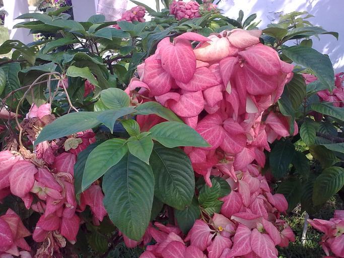 Keywords: Tropical pink flowers.jpg en Unidentified tropical plant southern Mexico own Wicki 2012-02-28 Mussaenda philippica cultivars Cc-zero