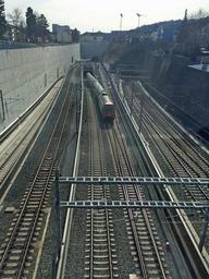 Keywords: Tunnels Oerlikon.jpg en Portals of three railway tunnels in Oerlikon  Zürich Switzerland “ from left Weinbergtunnel Wipkingertunnel Käferbergtunnel “ S-Bahn train coming from Zürich Hauptbahnhof leaving Weinbergtunnel own Albinfo 2015-03-08 Cc-zero Oerlikon Rail tunnels in Switzerland Weinbergtunnel Wipkingertunnel |