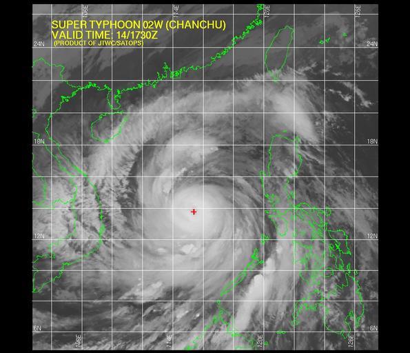 Keywords: Typhoon 02W (Chanchu) 2006-05-14 17-30Z.jpg en Typhoon 02W Chanchu 2006-05-14 17-30Z ja 台風1号 2006年 2006-05-14 http //www npmoc navy mil/jtwc/satshots/wp0206sair jpg <br>q v http //www npmoc navy mil/jtwc html Joint Typhoon Warning Center National Oceanic and Atmospheric Administration PD-USGov-Military-Navy PD-USGov-NOAA PD-USGov-Military-Navy PD-USGov-NOAA Typhoon Chanchu |