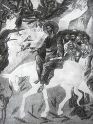 Keywords: Ubisi. Entry to Jerusalem.jpg en Entry into Jerusalem Ubisi Monastery Georgia ამირა აშვილი შ ქართული ხელ ვ ების ისტ რია Tbilisi 1971 Creator Damiane century 14 80px PD-old-100 Damiane Ubisi monastery frescoes Frescos of the triumphal entry into Jerusalem |