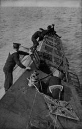 Keywords: UC5 captured.jpg The German Imperial Navy submarine UC 5 during its capture in 1916 UC 5 was a German Type UC I U-boat and commissioned on 19 June 1915 at Hamburg She served in the First World War under the command of Herbert Pustkuchen June 1915 - December 1915 and Ulrich Mohrbutter December 1915 - April 1916 She ran aground on Shipwash Shoal while on patrol on 27 April 1916 51°59 ²N 1°38 ²E and was scuttled but the charges failed to explode Her crew were captured by the British destroyer HMS Firedrake British sailors and officers boarding the captured UC-5 German mine-laying submarine The open grating shows one of the openings through which the mines are laid J Reynolds Allen L Churchill Francis Trevelyan Miller eds The Story of the Great War Volume V New York Specified year 1916 actual year more likely 1917 or 1918 Retreived from https //archive org/stream/storyofgreatwarh05churuoft page/n476/mode/1up 1916-04 <sup>http //www navsource org/archives/08/08465 htm NY newspaper</sup> Central News Photo Service PD-USGov frame removed SM UC 5 submarine 1915 191604 |