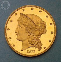 Keywords: legendary coins legendarycoins numismatics money smithsonian probably public domain probablypublicdomain round circle indoor cartoon SI Neg. 2005-27354. Date: 9/1/2005...Some twenty years after the private sector had abandoned the idea of a fifty-dollar gold piece in the mid-1850s, the Philadelphia Mint considered the possibility of a federal coin of this denomination. There was even talk of a "Union", or hundred-dollar coin, and a drawing or two has survived to suggest what the Mint had in mind. But in the end, no such coin was ever produced. .The project went a bit farther in the case of the "Half Union." Dies were prepared, the work of William Barber (father of the eventual Mint Chief Engraver Charles E. Barber). .Barber's obverse and reverse designs look vaguely akin to Longacre's work for the double eagle. A few patterns were struck in copper and two in gold; the latter share a reverse die but each has a slightly different obverse die. The project was abandoned soon afterwards, as it became apparent that the new coin simply wasn't needed..Click here to view the obverse...Credit: Tom Mulvaney (Smithsonian Institution) SI Neg. 2005-27354. Date: 9/1/2005...Some twenty years after the private sector had abandoned the idea of a fifty-dollar gold piece in the mid-1850s, the Philadelphia Mint considered the possibility of a federal coin of this denomination. There was even talk of a "Union", or hundred-dollar coin, and a drawing or two has survived to suggest what the Mint had in mind. But in the end, no such coin was ever produced. .The project went a bit farther in the case of the "Half Union." Dies were prepared, the work of William Barber (father of the eventual Mint Chief Engraver Charles E. Barber). .Barber's obverse and reverse designs look vaguely akin to Longacre's work for the double eagle. A few patterns were struck in copper and two in gold; the latter share a reverse die but each has a slightly different obverse die. The project was abandoned soon afterwards, as it became apparent that the new coin simply wasn't needed..Click here to view the obverse...Credit: Tom Mulvaney (Smithsonian Institution) |