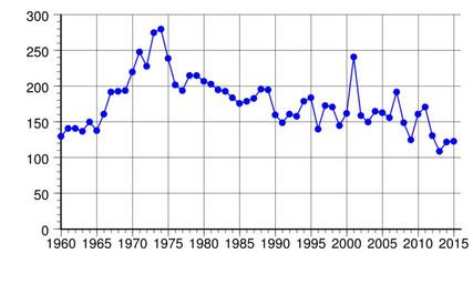 Keywords: United States Law Enforcement Deaths.svg en United States law enforcement deaths from 1960 to 2015 Data source http //www nleomf org/facts/officer-fatalities-data/year html National Law Enforcement Officers Memorial Fund 2016-02-18 own Delphi234 other versions Generated with Wikimedia SVG Chart SVG Chart/box cc-zero Police of the United States |