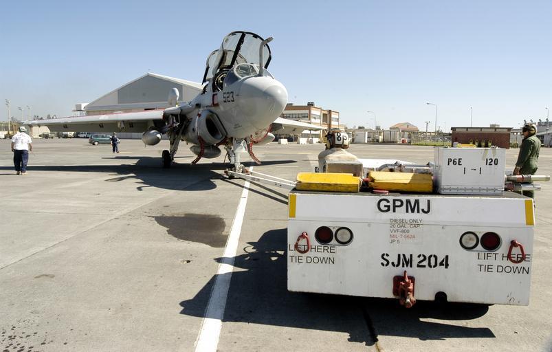 Keywords: US Navy 030313-N-9693M-005 Members assigned to the ^ldquo,Gray Wolves^rdquo, of Electronic Attack Squadron One Four Two (VAQ-142) maneuver an EA-6B Prowler into position for a maintenance check.jpg en Naval Air Station Sigonella Sicily Mar 13 2003 -- Members assigned to the Gray Wolves of Electronic Attack Squadron One Four Two VAQ-142 maneuver an EA-6B Prowler into position for a maintenance check The Gray Wolves are returning to their home base at Naval Air Station Whidbey Island Wash following a deployment to Prince Sultan Air Base Saudi Arabia Naval Air Station Sigonella provides logistical support for Sixth Fleet and NATO forces in the Mediterranean Sea U S Navy photo by Photographer's Mate 2nd Class Damon J Moritz RELEASED 2003-03-13 030313-N-9693M-005 Navy http //www navy mil/view_image asp id 5139 U S Navy photo by Photographer's Mate 2nd Class Damon J Moritz Grumman EA-6 Prowler Electronic Attack Squadron 142 United States Navy Naval Air Station Sigonella PD-USGov-Military-Navy |