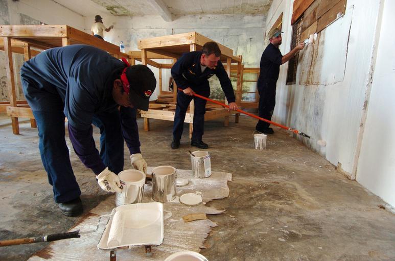 Keywords: US Navy 050420-N-8629M-125 U.S. Navy Sailors and Civilian Mariners from the Military Sealift Command (MSC) ships, USNS Niagara Falls (T-AFS 3), USNS San Jose (T-AFS 7) and USNS Mercy (T-AH 19), participate in a community relati.jpg en Nias Indonesia April 20 2005 U S Navy Sailors and Civilian Mariners from the Military Sealift Command MSC ships USNS Niagara Falls T-AFS 3 USNS San Jose T-AFS 7 and USNS Mercy T-AH 19 participate in a community relations project to paint and repair damaged buildings at a nursing school in Nias Indonesia At the request of the government of Indonesia the Military Sealift Command MSC hospital ship USNS Mercy T-AH 19 MSC combat stores ships USNS Niagara Falls T-AFS 3 and USNS San Jose T-AFS 7 are on station off the coast of Nias providing assistance as determined appropriate and necessary with earthquake disaster relief efforts and provide medical assistance to those in need U S Navy photo by Photographer's Mate 3rd Class Rebecca J Moat RELEASED 2005-04-20 050420-N-8629M-125 Navy http //www navy mil/view_image asp id 23790 U S Navy photo by Photographer's Mate 3rd Class Rebecca J Moat PD-USGov-Military-Navy Images from US Navy location Nias Indonesia Aboard USS Niagara Falls AFS-3 |