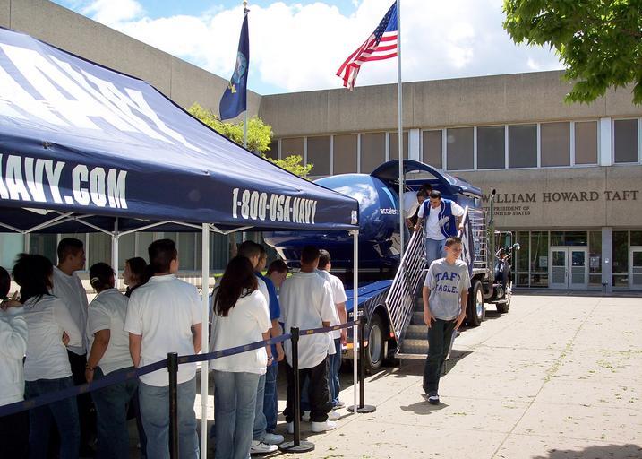 Keywords: US Navy 060518-N-3342W-004 Students line up to ride the Navy F-A-18 Flight Simulation ride at William Howard Taft High School in Northwest Chicago.jpg en Chicago Ill May 18 2006 - Students line up to ride the Navy F/A-18 Flight Simulation ride at William Howard Taft High School in Northwest Chicago The flight simulation ride entertained students as part of the Navy Week Chicago festivities Navy Week Chicago is one of twenty Navy Weeks planned for U S cities this year by the Navy Office of Community Outreach NAVCO U S Navy photo by Senior Chief Photographer's Mate Douglas E Waite RELEASED 2006-05-18 060518-N-3342W-004 Navy http //www navy mil/view_image asp id 34675 U S Navy photo by Senior Chief Photographer's Mate Douglas E Waite PD-USGov-Military-Navy Images from US Navy location CHICAGO Chicago Navy Week |